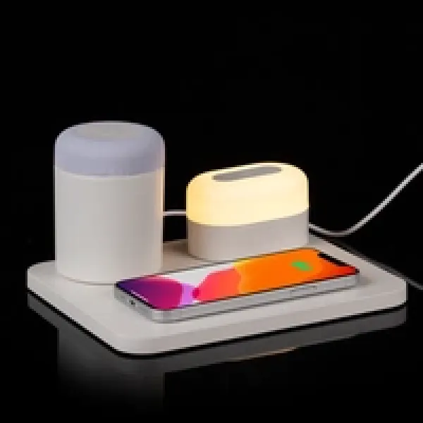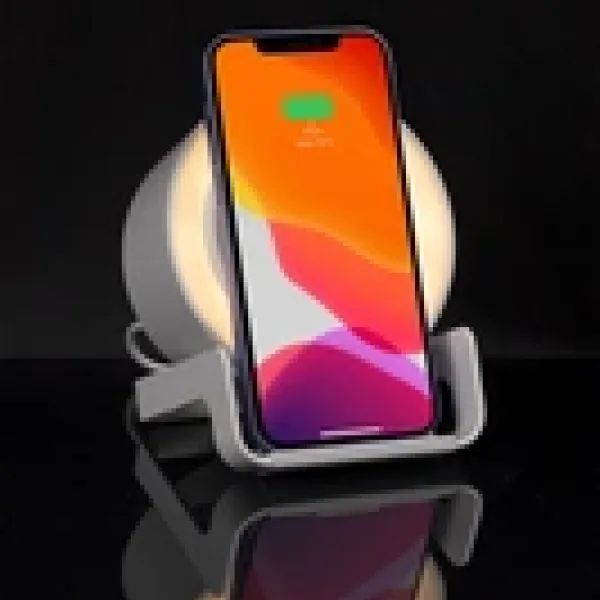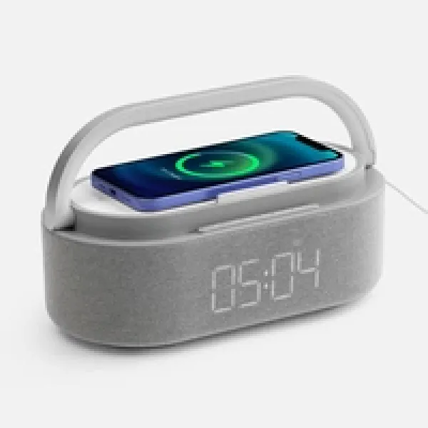 Bluetooth-колонка с беспроводной зарядкой и часами netEnergy, серая