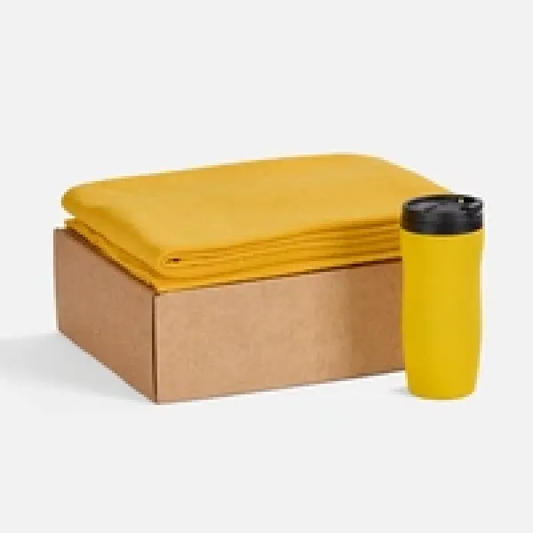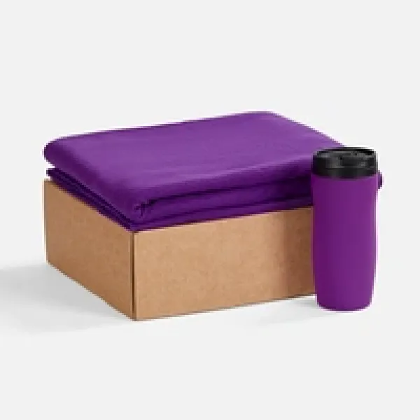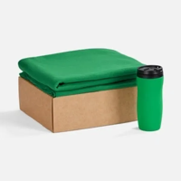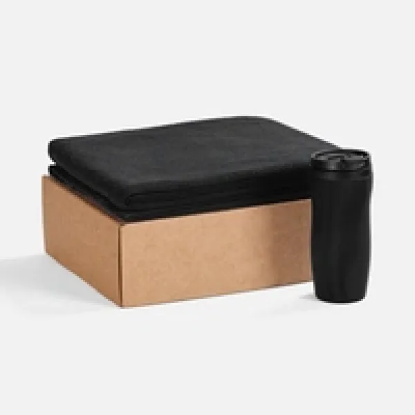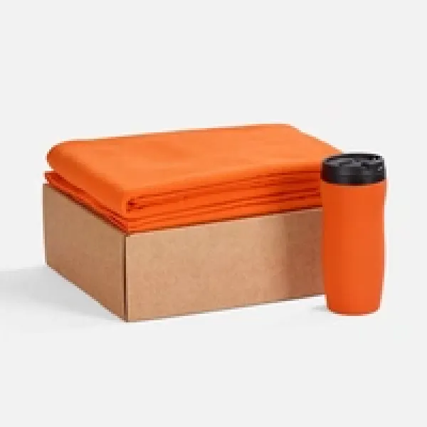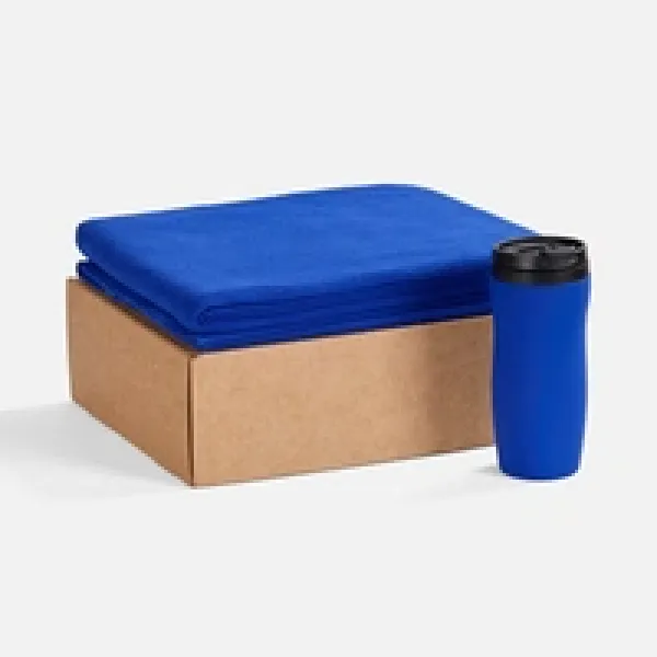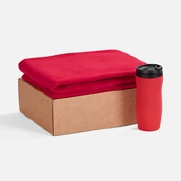 крышка, внутренняя колба - пластик; корпус - нержавеющая сталь; покрытие софт-тач; плед - флис, плотность 180 г/м²; коробка - микрогофрокартон, Т-23Е