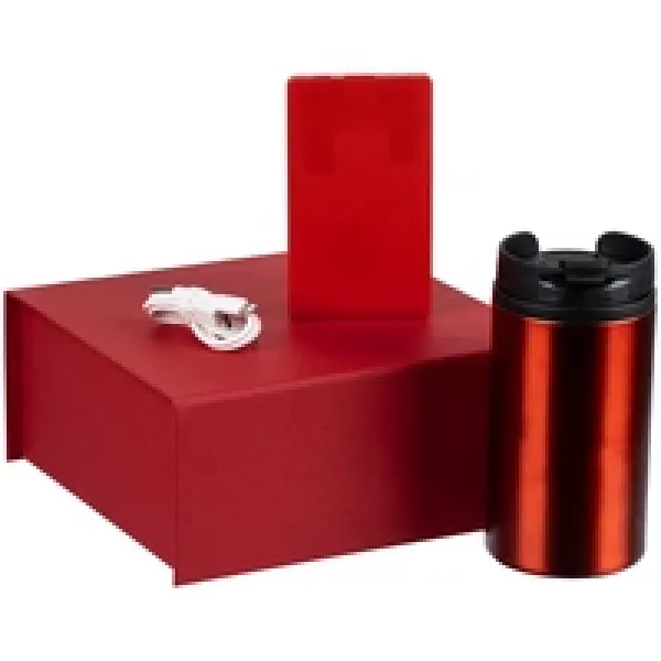 термостакан - пластик, нержавеющая сталь; аккумулятор - пластик; коробка - переплетный картон; ложемент - поролон