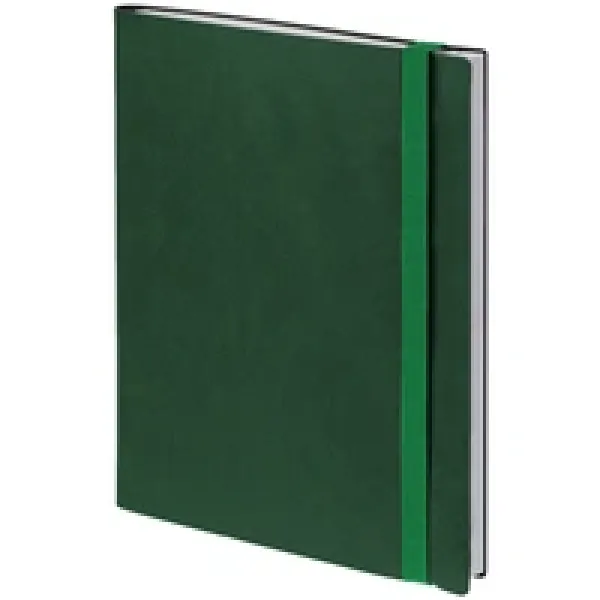 Ежедневник с твердой обложкой, выполнен из материала Latte, зеленый FF, дополнен ляссе в цвет обложки.