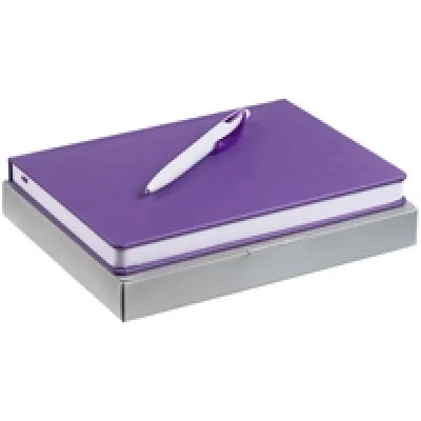 Ежедневник с твердой обложкой. Выполнен из материала Latte, фиолетовый, дополнен ляссе в цвет обложки.