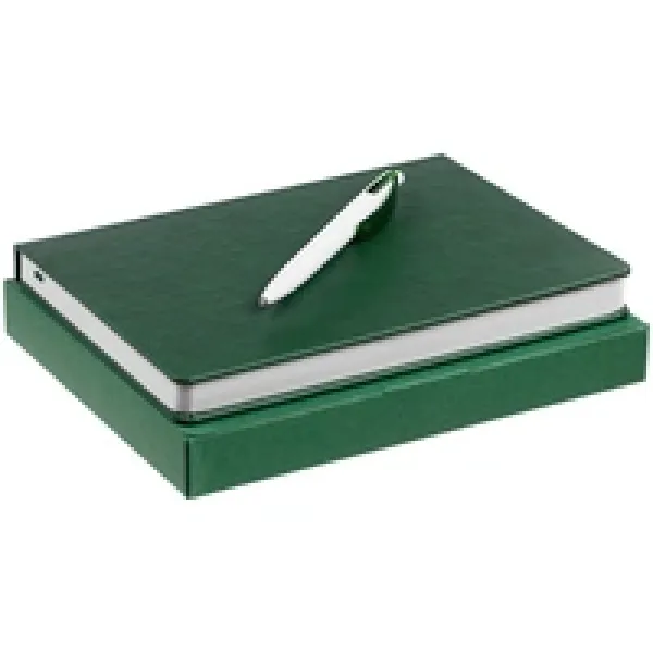 Ежедневник с твердой обложкой. Выполнен из материала Latte, зеленый, дополнен ляссе в цвет обложки.