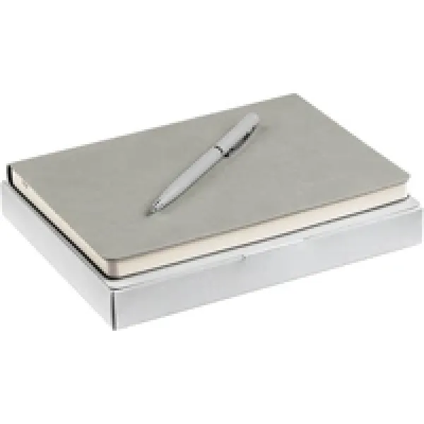 Ежедневник с гибкой обложкой, выполнен из материала Latte, серый, дополнен ляссе в цвет обложки.