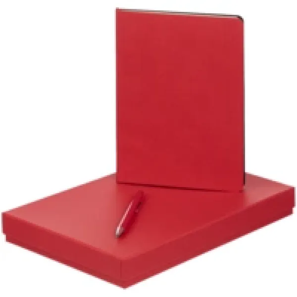 Ежедневник с гибкой обложкой, выполнен из материала Latte, красный, дополнен ляссе в цвет обложки.