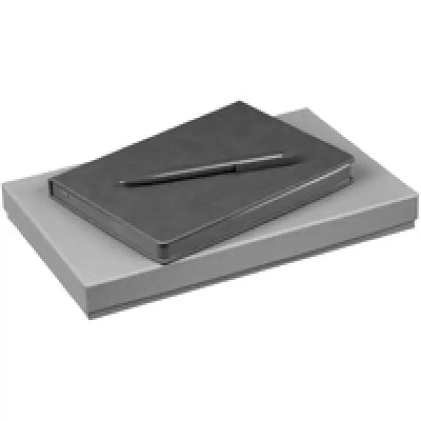Ежедневник с твердой обложкой и тонированным обрезом. Выполнен из материала Latte, темно-серый, дополнен ляссе в цвет обложки.