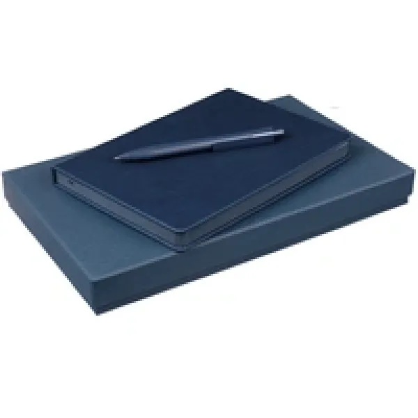 Ежедневник с твердой обложкой и тонированным обрезом. Выполнен из материала Latte, темно-синий, дополнен ляссе в цвет обложки.
