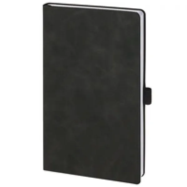 Ежедневник с гибкой обложкой, выполнен из материала Nubuck Touch, черный АА, дополнен ляссе и петлей-резинкой для ручки черного цвета.