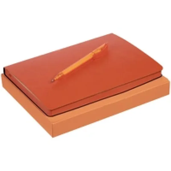 Ежедневник с гибкой обложкой, выполнен из материала Latte, оранжевый, дополнен ляссе в цвет обложки.