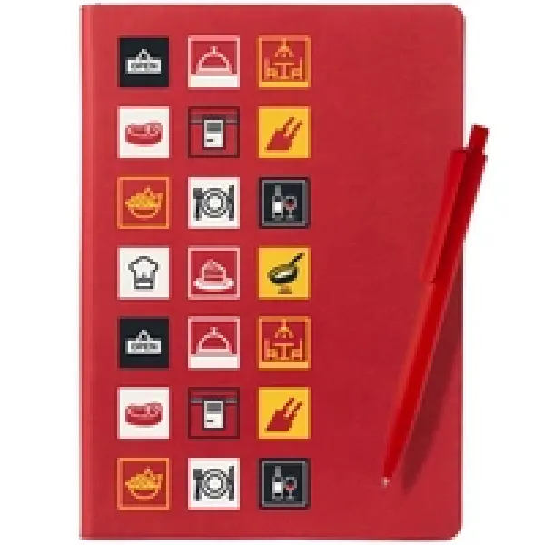 Ежедневник с гибкой обложкой, выполнен из материала Latte, красный, дополнен ляссе в цвет обложки.