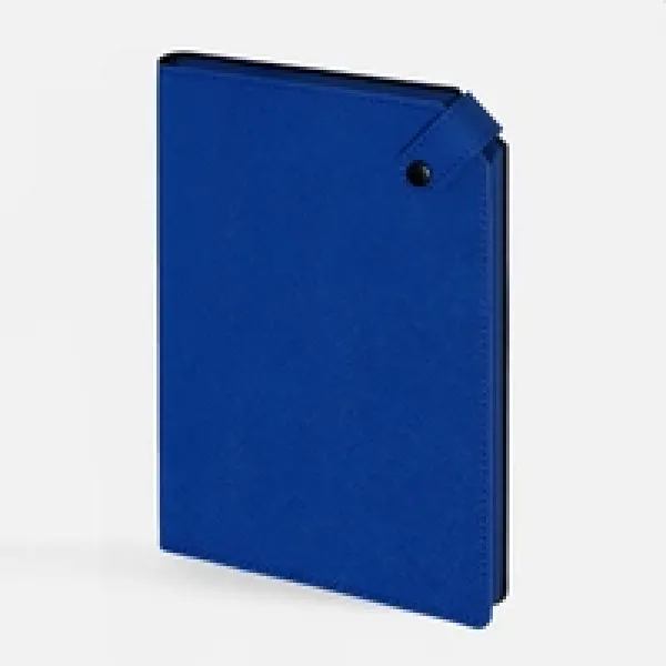 Ежедневник с гибкой обложкой, выполнен из материала Espresso, дополнен ляссе черного цвета и хлястиком на кнопке.