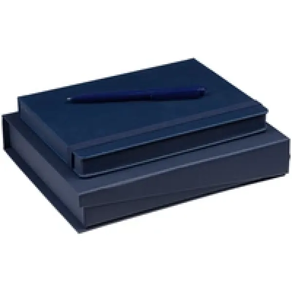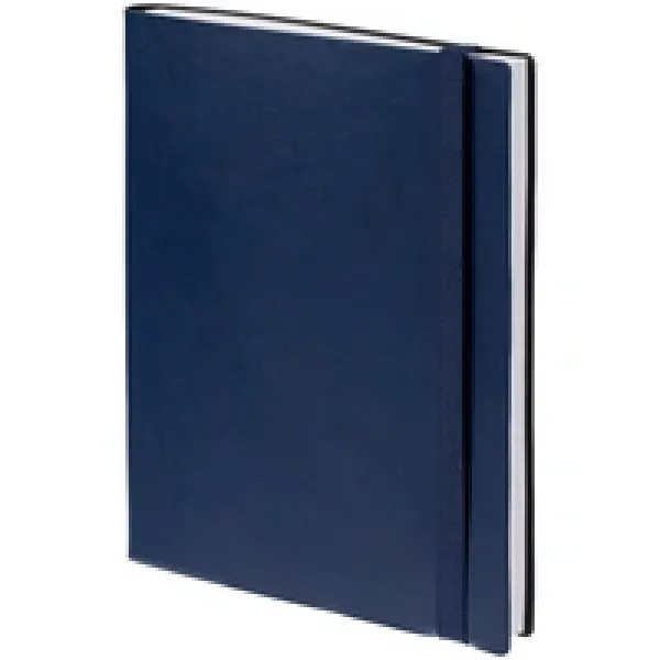 Ежедневник с твердой обложкой, выполнен из материала Latte, темно-синий ХХ, обрез темно-синего цвета, дополнен резинкой и ляссе темно-синего цвета.