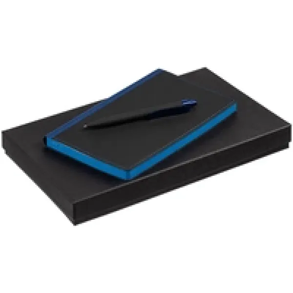 Ежедневник с гибкой обложкой выполнен из материала Nice Touch, черный АА и Soft Touch Ultra, синий НН, дополнен ляссе гсинего цвета.