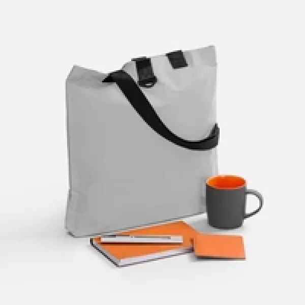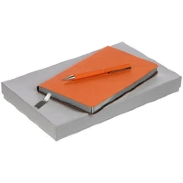 Ежедневник с гибкой обложкой, выполнен из материала Petrus, оранжевый ОО, дополнен серым ляссе с металлическим шильдиком.
