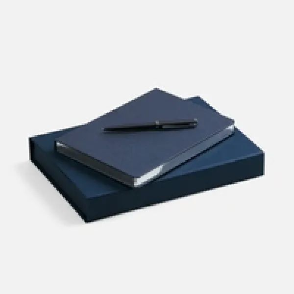 Ежедневник с твердой обложкой и серебристым обрезом, выполнен из материала Saffian, синий НН, дополнен ляссе в цвет обложки.