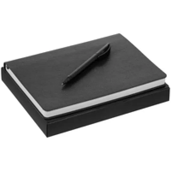 Ежедневник с гибкой обложкой, выполнен из материала La Fite, черный АА, дополнен ляссе в цвет обложки с металлическим шильдом.
