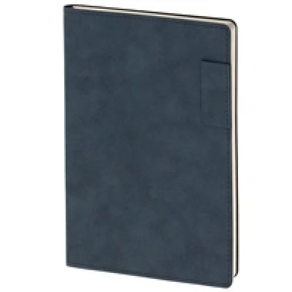Ежедневник с гибкой обложкой, выполнен из материала Nubuck, цвет морской волны II, дополнен петлей-лейблом для ручки и ляссе в цвет материала.