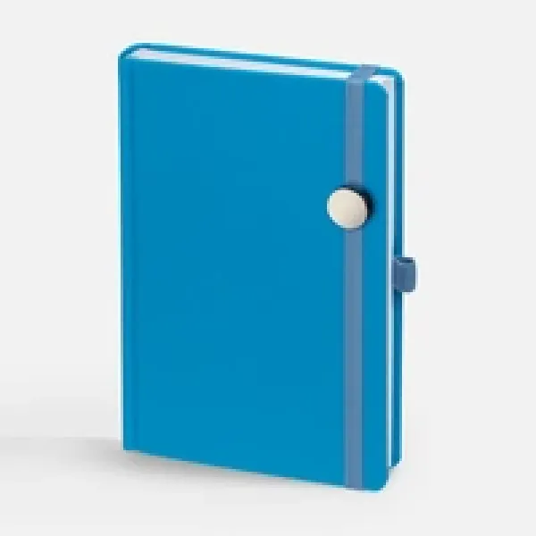Ежедневник с твердой обложкой без поролона, выполнен из материала Soft Touch Ultra, голубой JJ, дополнен резинкой шириной 1 см, петлей-резинкой для ручки, капталом и ляссе голубого цвета.